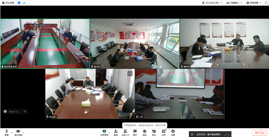 受到各储粮库点地理位置分散且交通不便,库区人员难以集中等条件限制,粮油购销公司创新性采用视频会议的形式,将嘉祥粮库、鱼台粮库、梁山粮库等不同县域的库点统一组织起来,让每一位奋战在仓储保管一线的员工紧密连接在了一起。